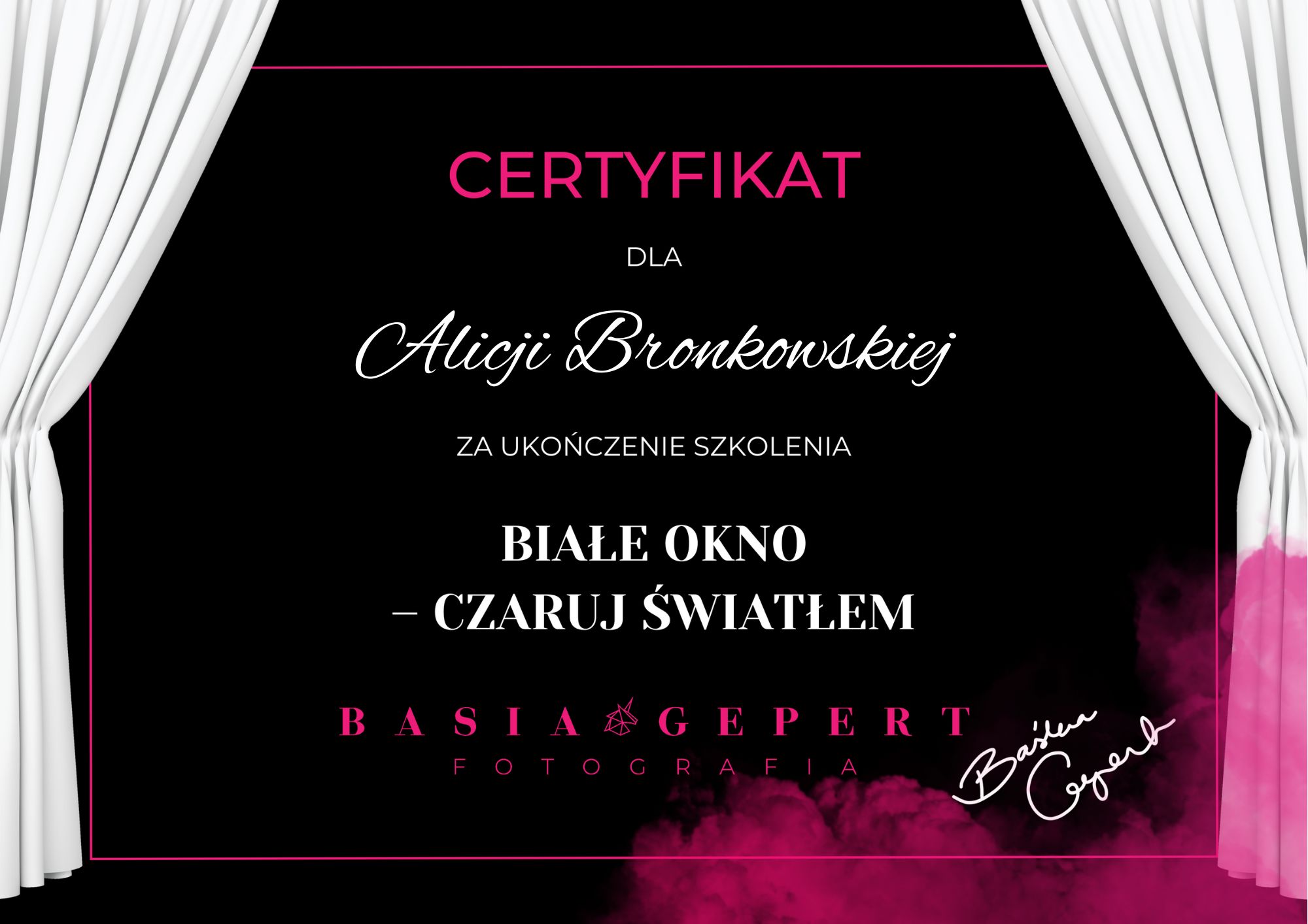 Mam na imię Alicja i jestem fotografem z Opola. Zajmuję się głównie fotografią dziecięcą i rodzinną. Moją fotograficzną przygodę rozpoczęłam ponad 7 lat temu, gdy urodziła się moja pierwsza córka, a zarazem, jak sie potem okazało, moja wspaniała i cierpliwa modelka :) Od tego czasu staram się nieustannie rozwijać i doskonalić swój warsztat. Pracuję na najwyższej jakości sprzęcie fotograficznym. Organizuję sesje przedszkolne, plenerowe oraz reportaże okolicznościowe.